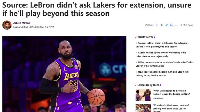 湖人媒体Lakers Daily记者Ashish Mathur也确认了消息的真实性,同时指出休赛期詹姆斯团队已经向湖人高层两次施压。